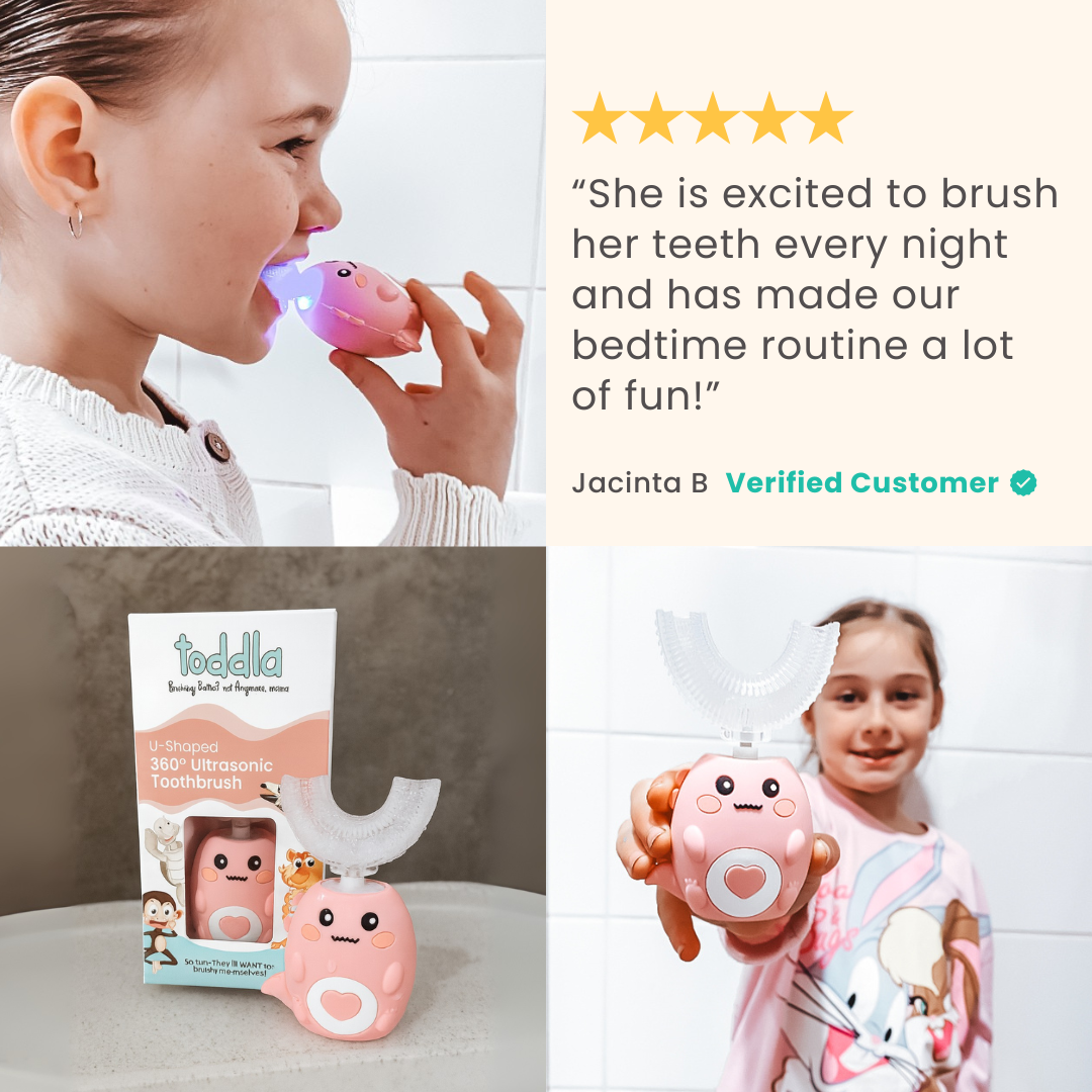 Getting your little one to brush their teeth shouldn’t feel like a daily fight. That’s why we created the Toddla™ U-Shaped Toothbrush — a gentle, fast solution that actually makes brushing fun.
